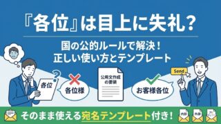 「各位」は目上に失礼?公的ルールに基づく正しい使い方と宛名テンプレート一斉送信メールを作成しているとき、宛名欄に「各位」と入力して、ふと手が止まってしまうことはありませんか?「目上の人や取引先の社長に対して、『各位』だけで呼び捨てにするよう...