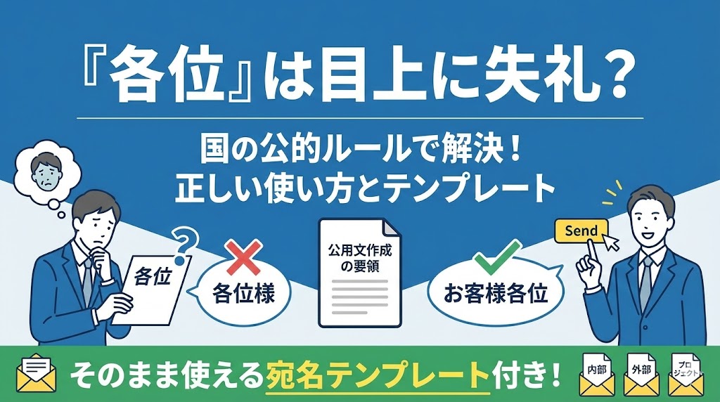 「各位」の正しい使い方を解説|「様」が不要な理由とコピペOKなシーン別テンプレート