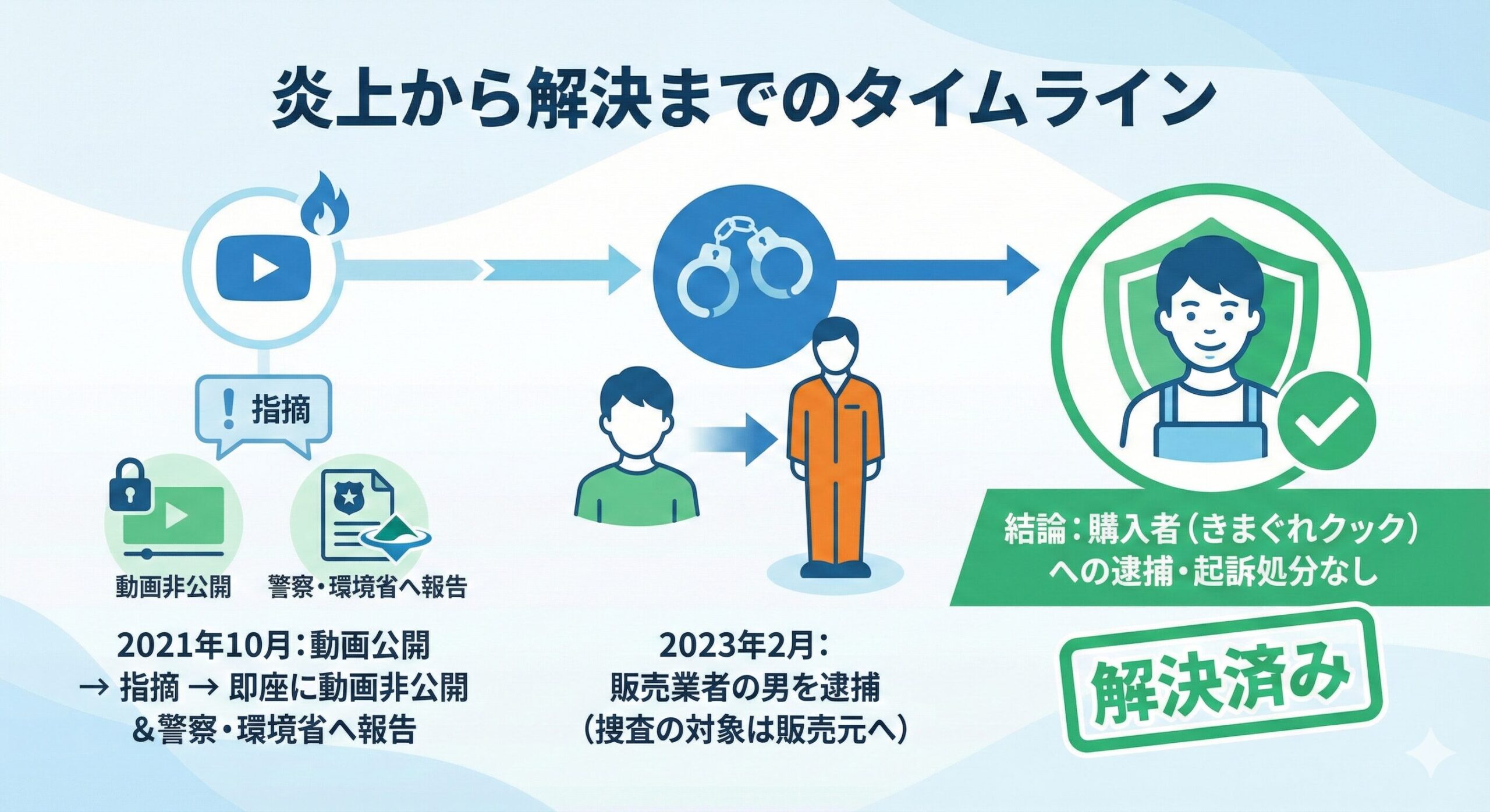- ✅ 【真実】 販売業者が逮捕され、本人は処分なし。警察へ報告済み。