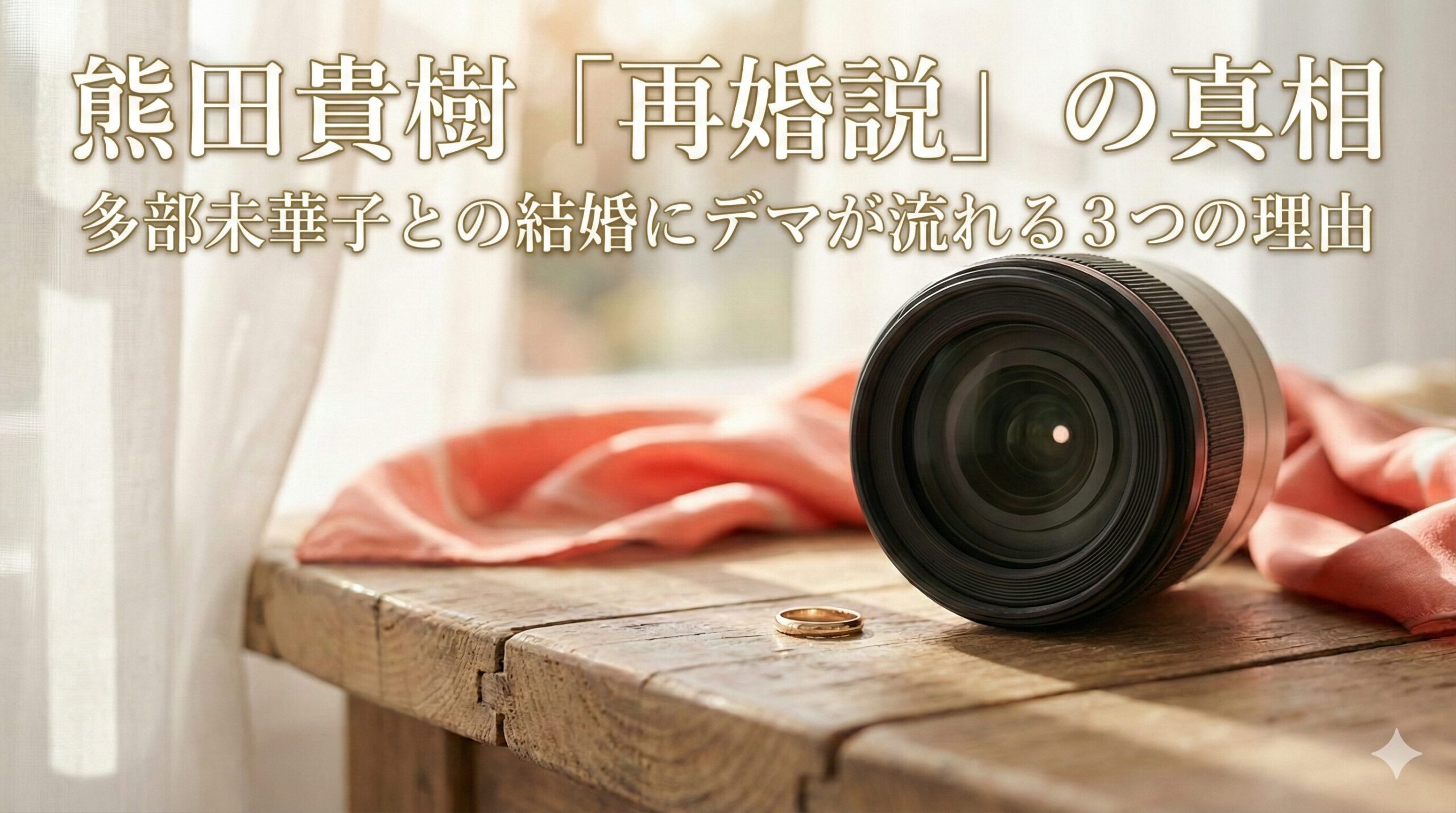 2019年10月1日、多部未華子さんが所属事務所を通じて発表した結婚報告を覚えていますか? 当時、主要メディアであるORICON NEWSやモデルプレスなどは一斉に「写真家の熊田貴樹氏と結婚」と報じましたが、どの媒体も熊田氏に婚姻歴がある(バツイチである)とは一言も触れていません。