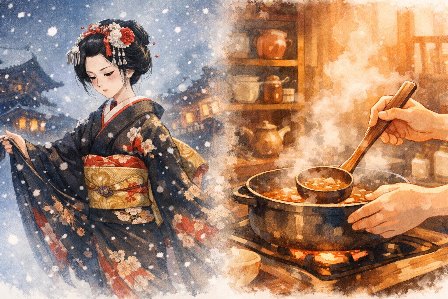 この歌詞は、愛する人を待ち続ける独り寝の寂しさと、知らぬ間に降り積もる雪のように過ぎ去っていく時間を表現しています。しかし、花街においてこの曲は、単なる悲恋の歌としてだけでなく、舞妓から芸妓へと変わる「襟替え」の時期に舞われることが多い、特別な演目でもあります。