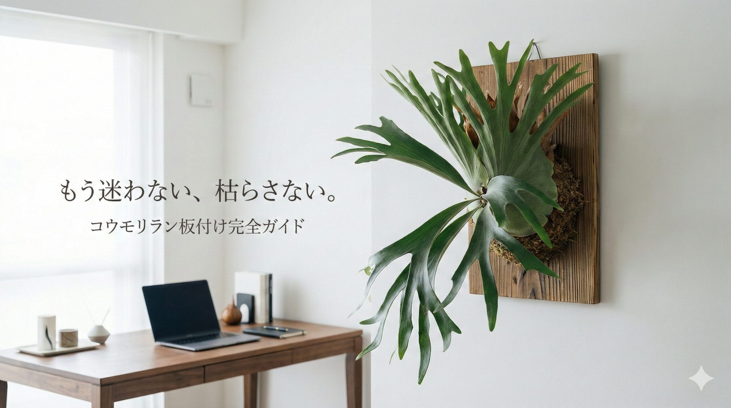 InstagramやPinterestで見かけた、壁に美しく飾られたコウモリラン。その「板付け」の姿に一目惚れして、雑貨屋で小さな鉢植えを買ってみたものの、いざ目の前にすると「どうしていいかわからない」と立ち止まっていませんか?
