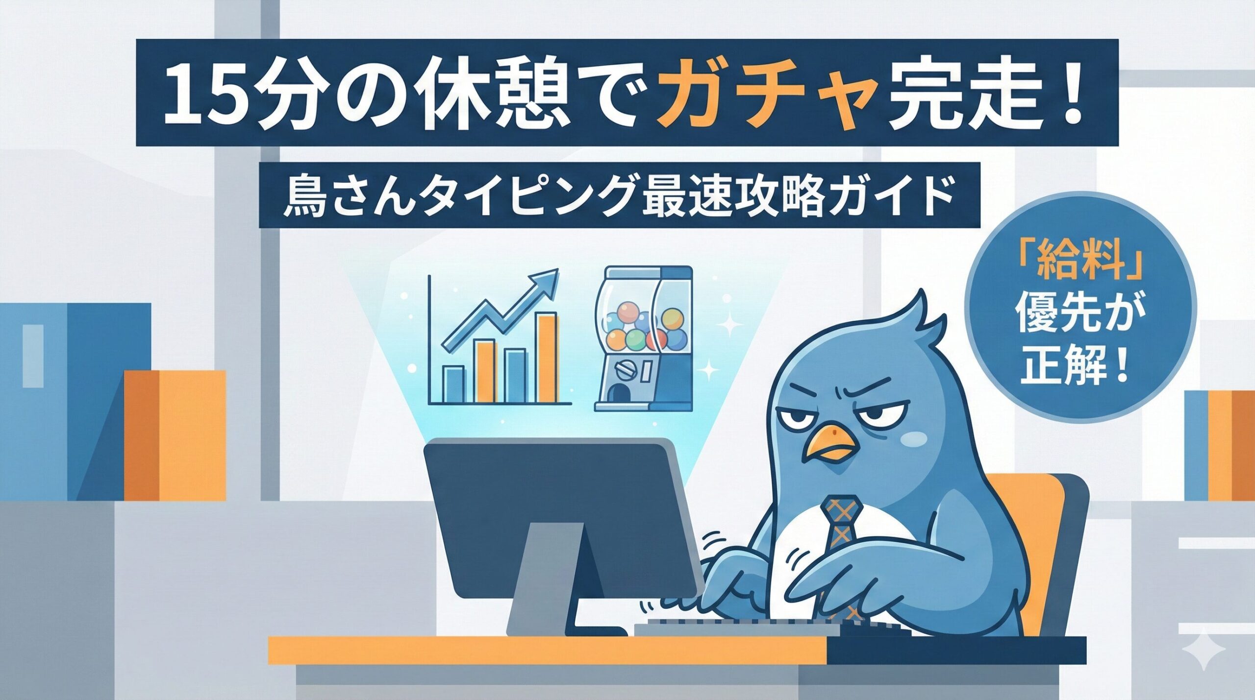 タイピングという「行動」が、バイト代という「資産」に変わり、それがガチャという「報酬」に直結する。このシンプルな報酬系が、仕事の合間の乾いた脳に心地よいドーパミンを流してくれます。気づけば「練習のために打つ」のではなく、「鳥さんにガチャを回させてあげたいから打つ」という、不思議な使命感に包まれているはずです。