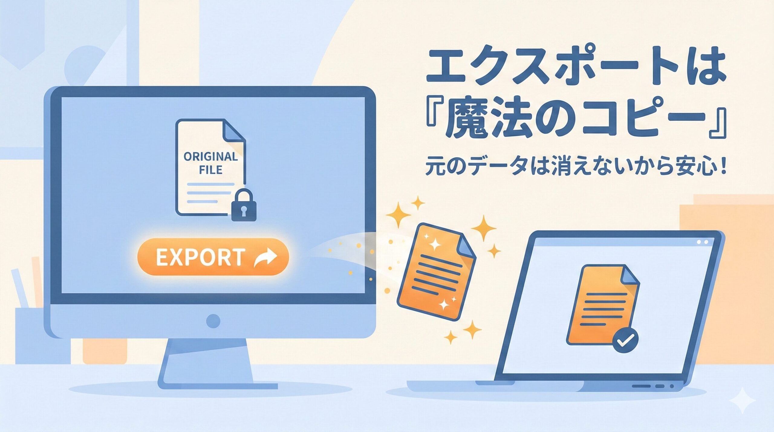 エクスポートボタンを押したとき、システムの中では「コピー機」が動いています。元のデータには指一本触れず、その内容をそっくり写した「新しいファイル」をあなたのパソコンの中に作ってくれるだけなのです。